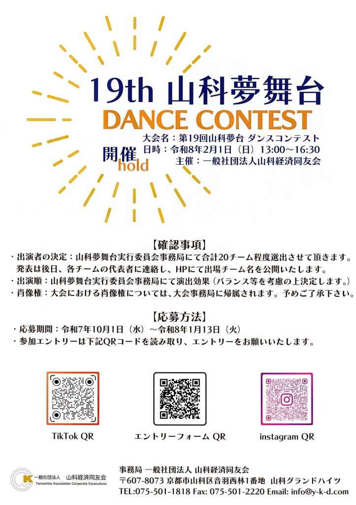2025-10-17 / 最終更新日時 : 2025-10-17 yama_admin 19th 山科夢舞台 DANCE CONTEST こちらもオススメ 【募集】15期生~きょうのやま[…] サウンドマルシェ~敷居の低いリ[…] 子ども食堂を開催 毎月第1土曜[…] やましなぐらし ジモティの御用[…] 山科の歴史・文化を楽しむ観光ラ[…] ウミガメのウーミンとのふれあい[…] やましな子ども食堂MAP 第44回京都矯正展/京都刑務所